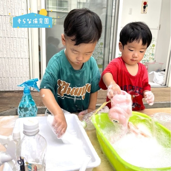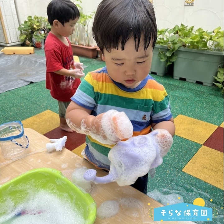 やわらかい感触を味わいながら、そっとそっとすくっての泡遊びに夢中です❤️