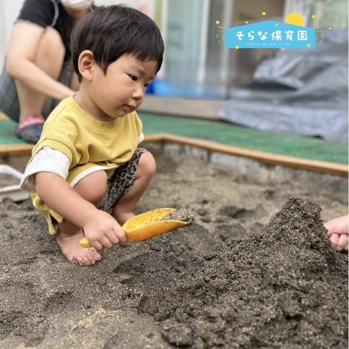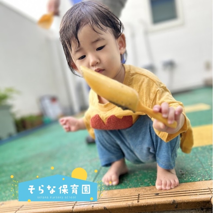 最近のそらな保育園の園庭では、子どもたちが水遊びで大盛り上がりです!