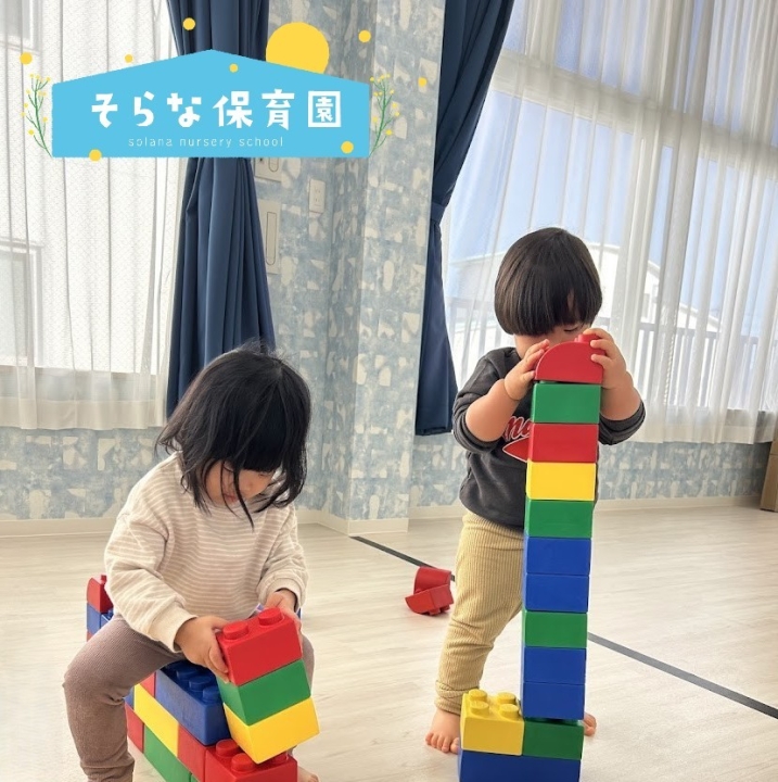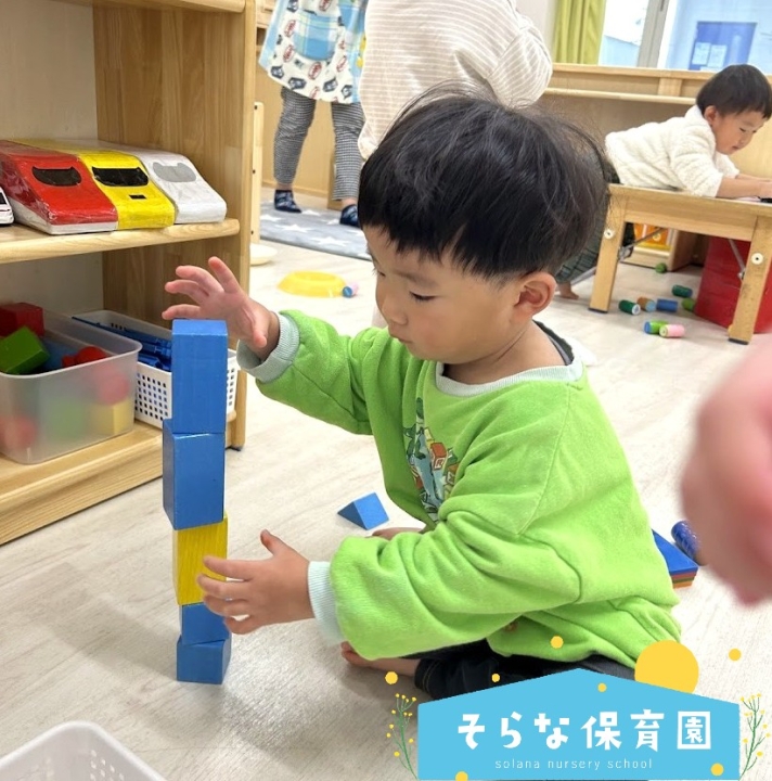 この時期まだ色の区別はなく、同じものを積むことを楽しんでいます😊