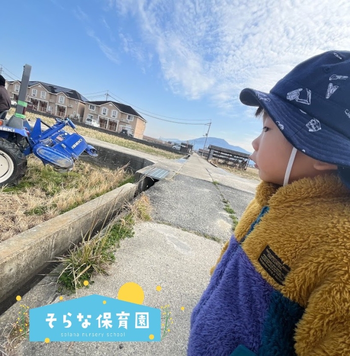 散歩に行った先でトラクターを発見し、目はくぎ付けです👀